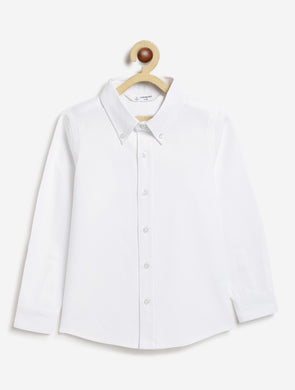 Campana Boys Solid Full Sleeves Pure Cotton Oxford Shirt - White