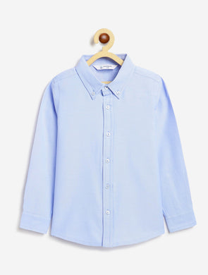 Campana Boys Solid Full Sleeves Pure Cotton Oxford Shirt - Light Blue
