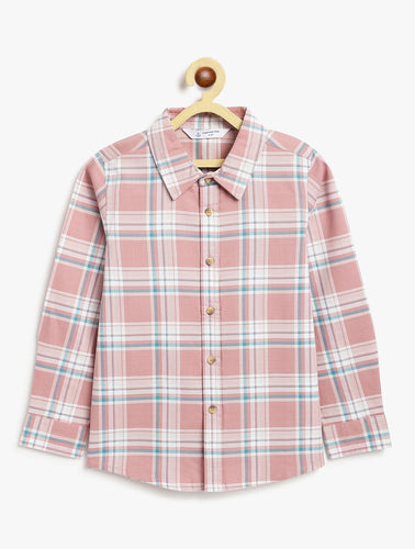 Campana Boys Wilson 100% Cotton Checked Shirt - Dusty Pink & White