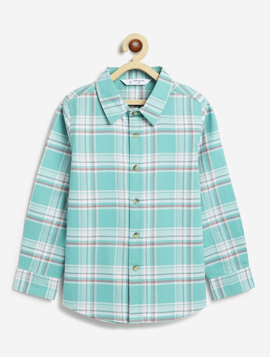 Campana Boys Wilson 100% Cotton Checked Shirt - Navy Blue & Teal Green