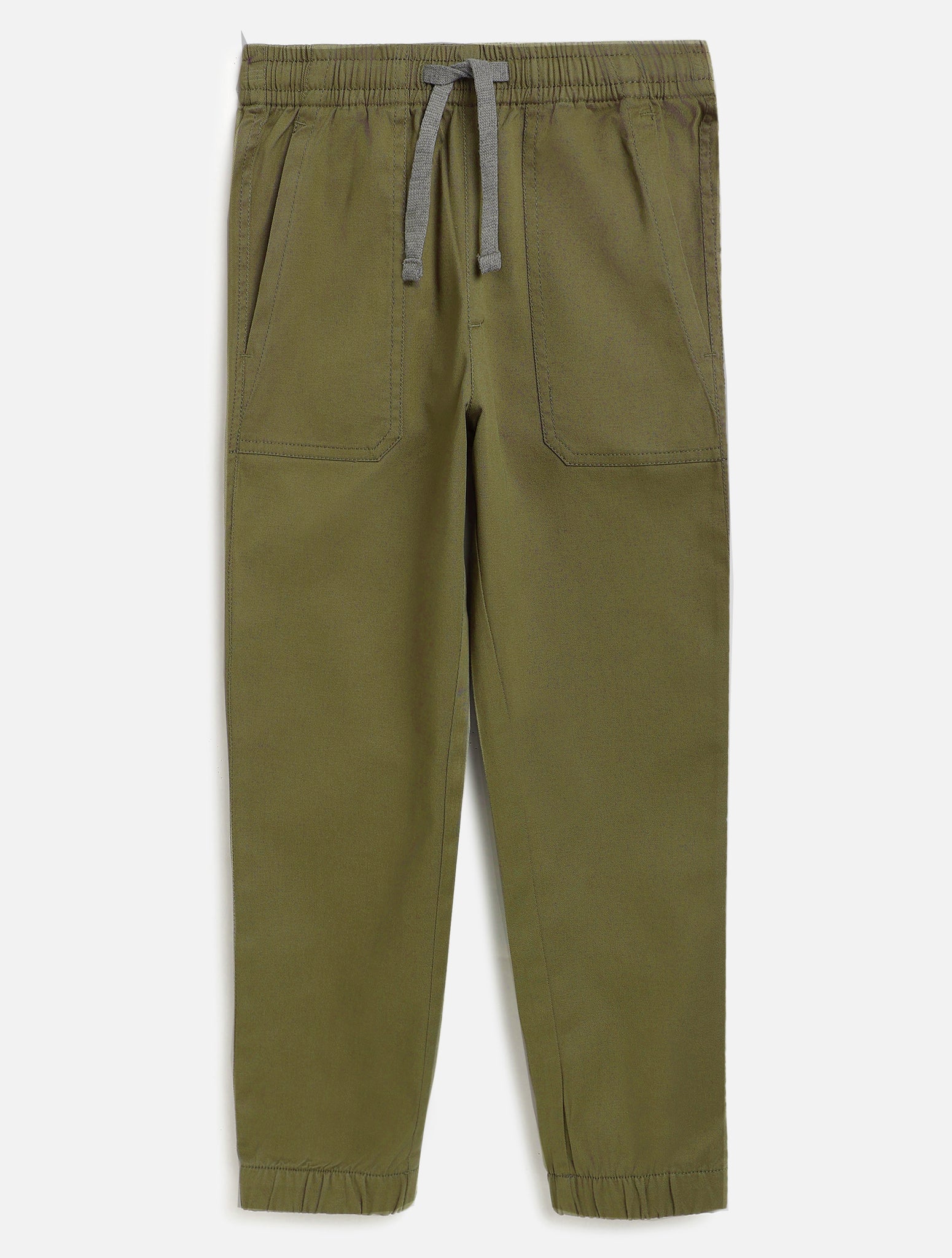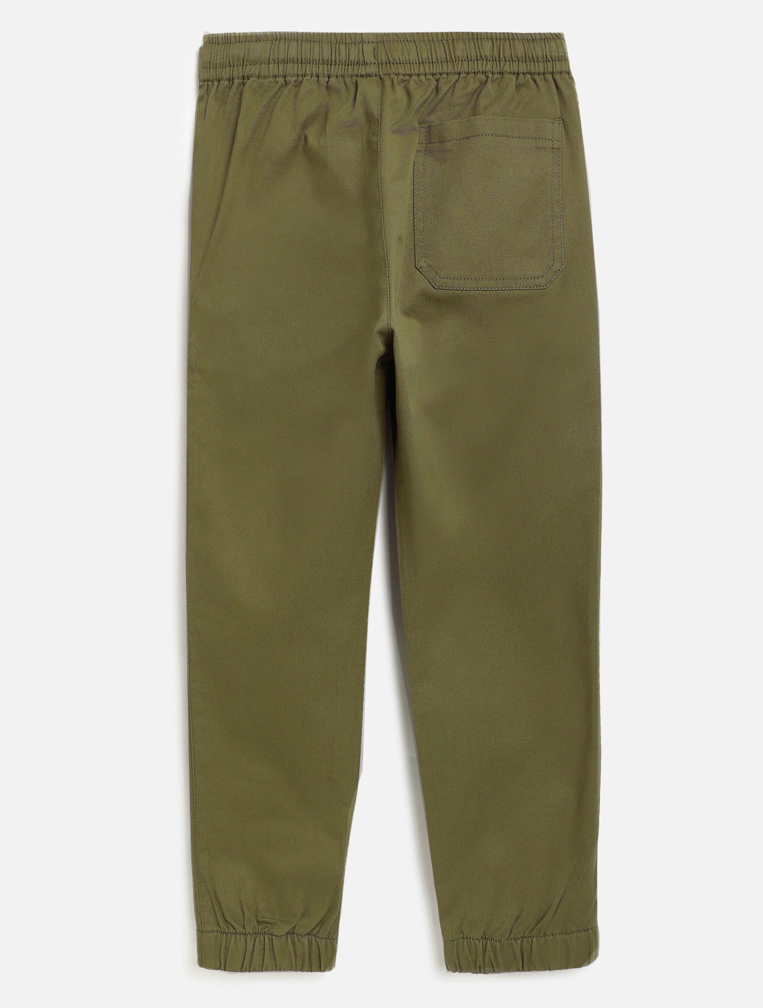 Olive solid jogger pants in cotton elastane fabric.