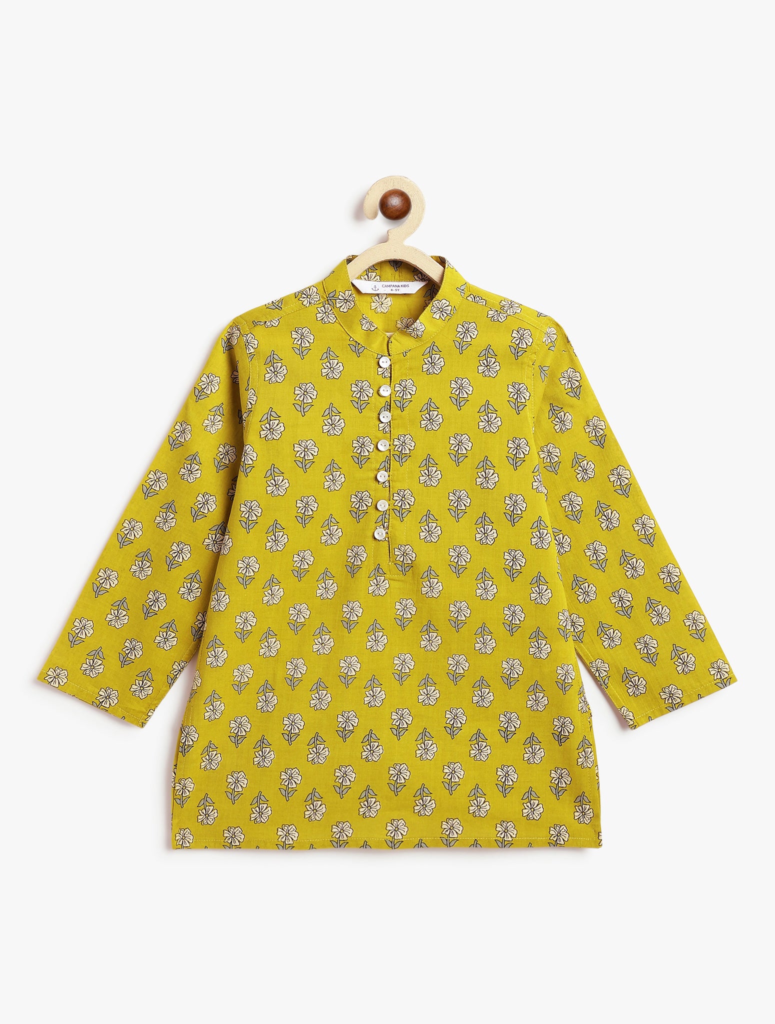 Kurta has full sleeves with mandarin collar neck and front button closure.