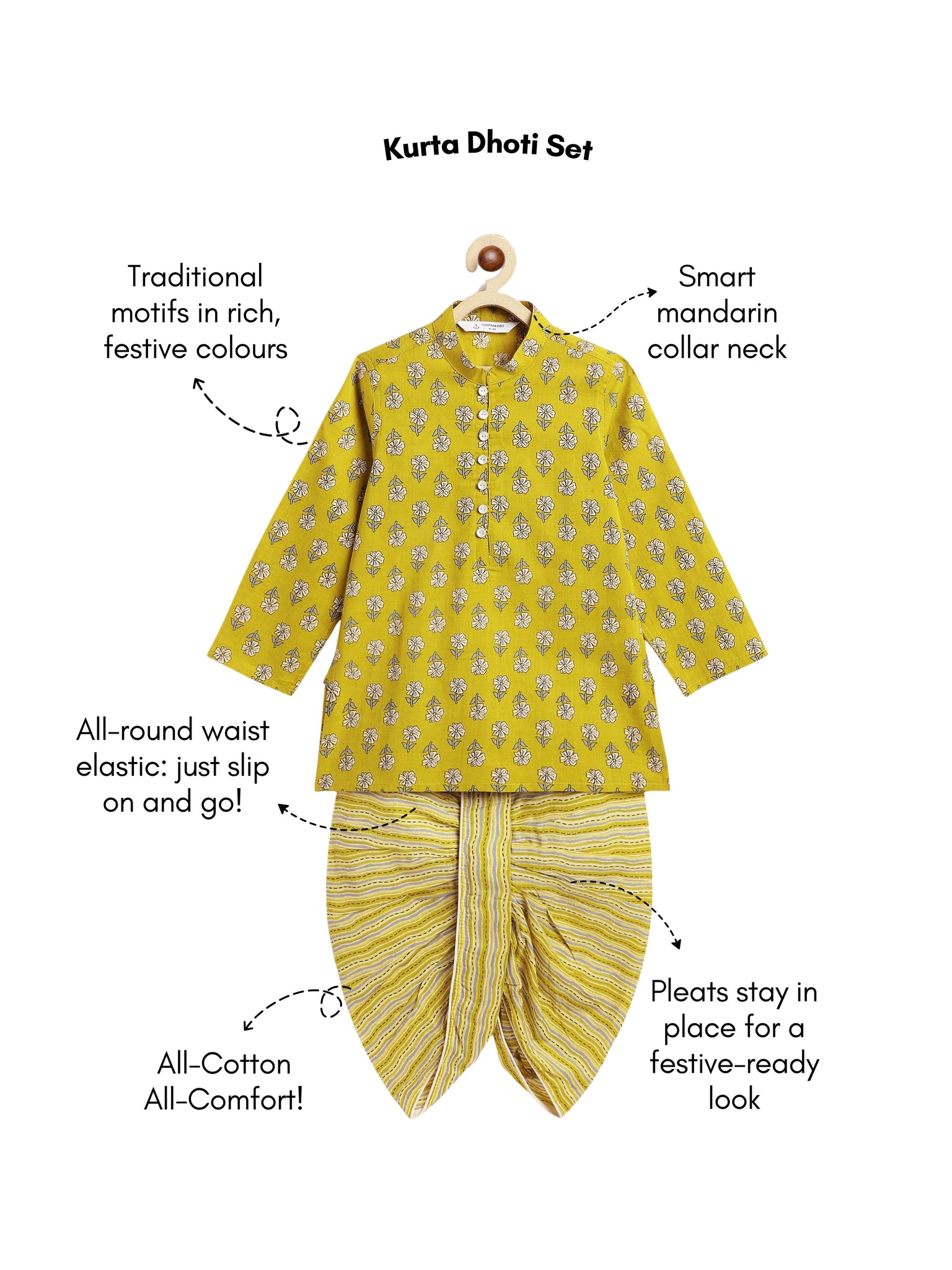 Dhoti has a slip-on elasticated waistband and contrast piping.