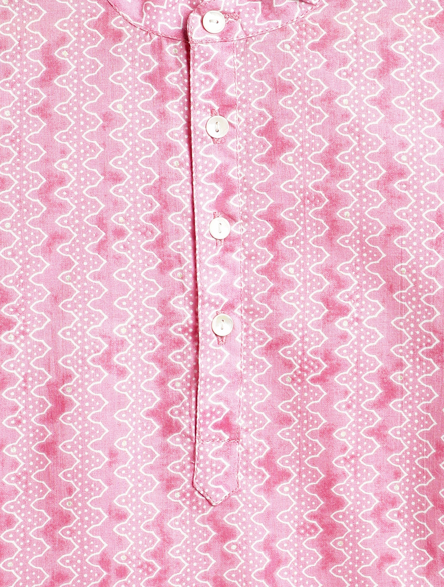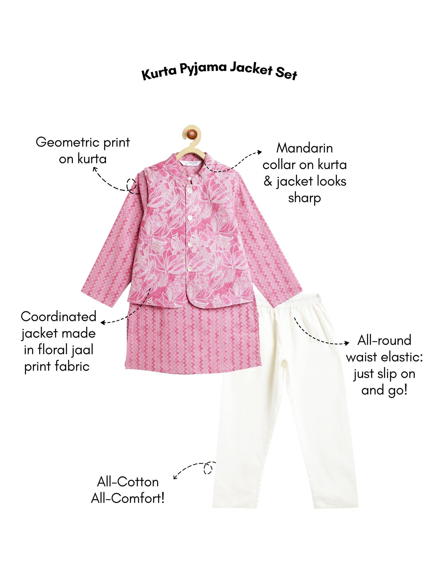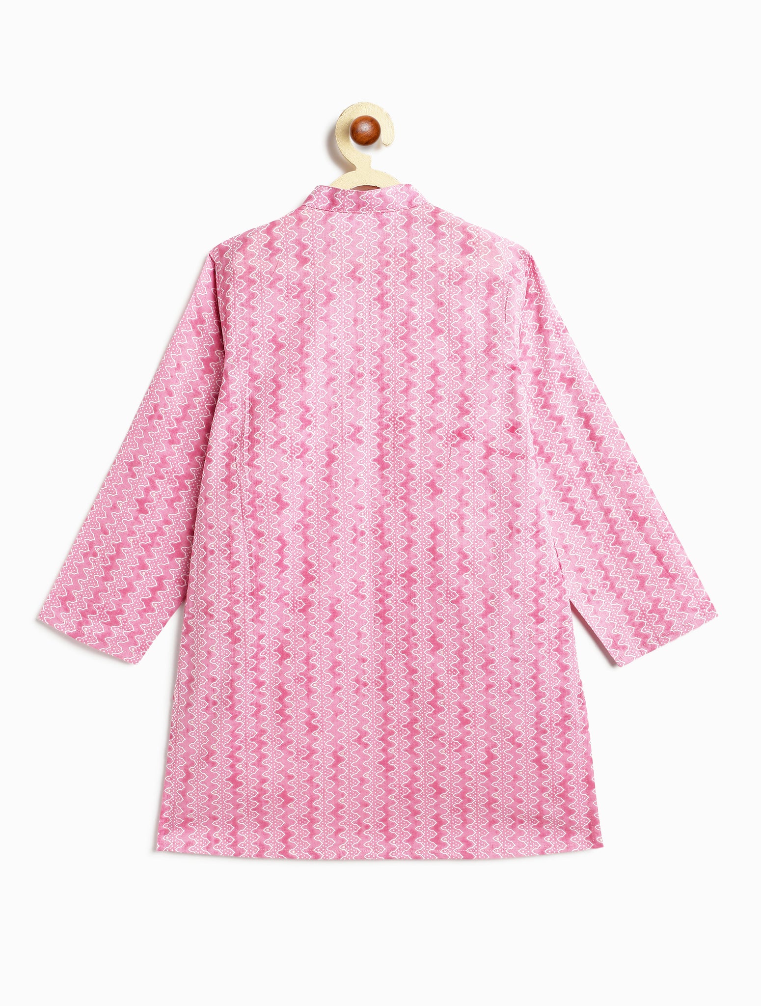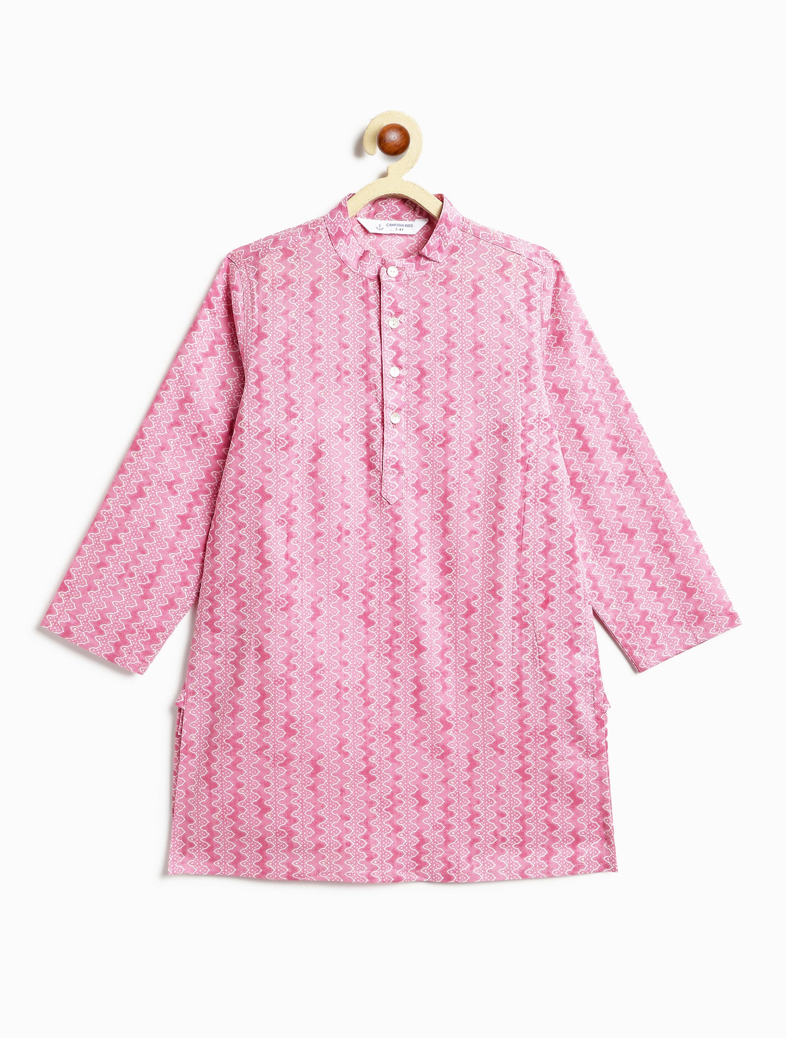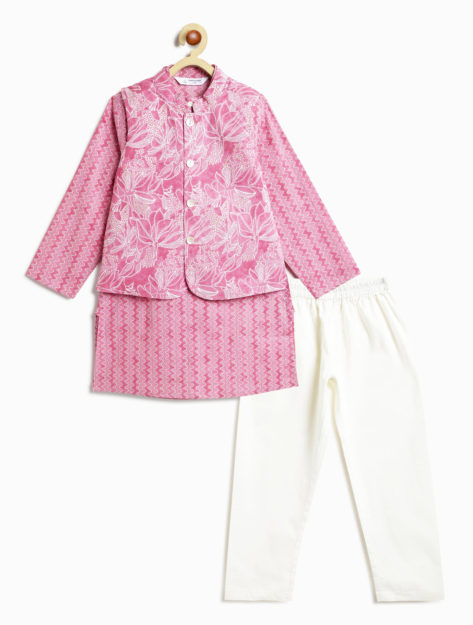 Light purple floral & geometric printed boys kurta set in pure cotton fabric