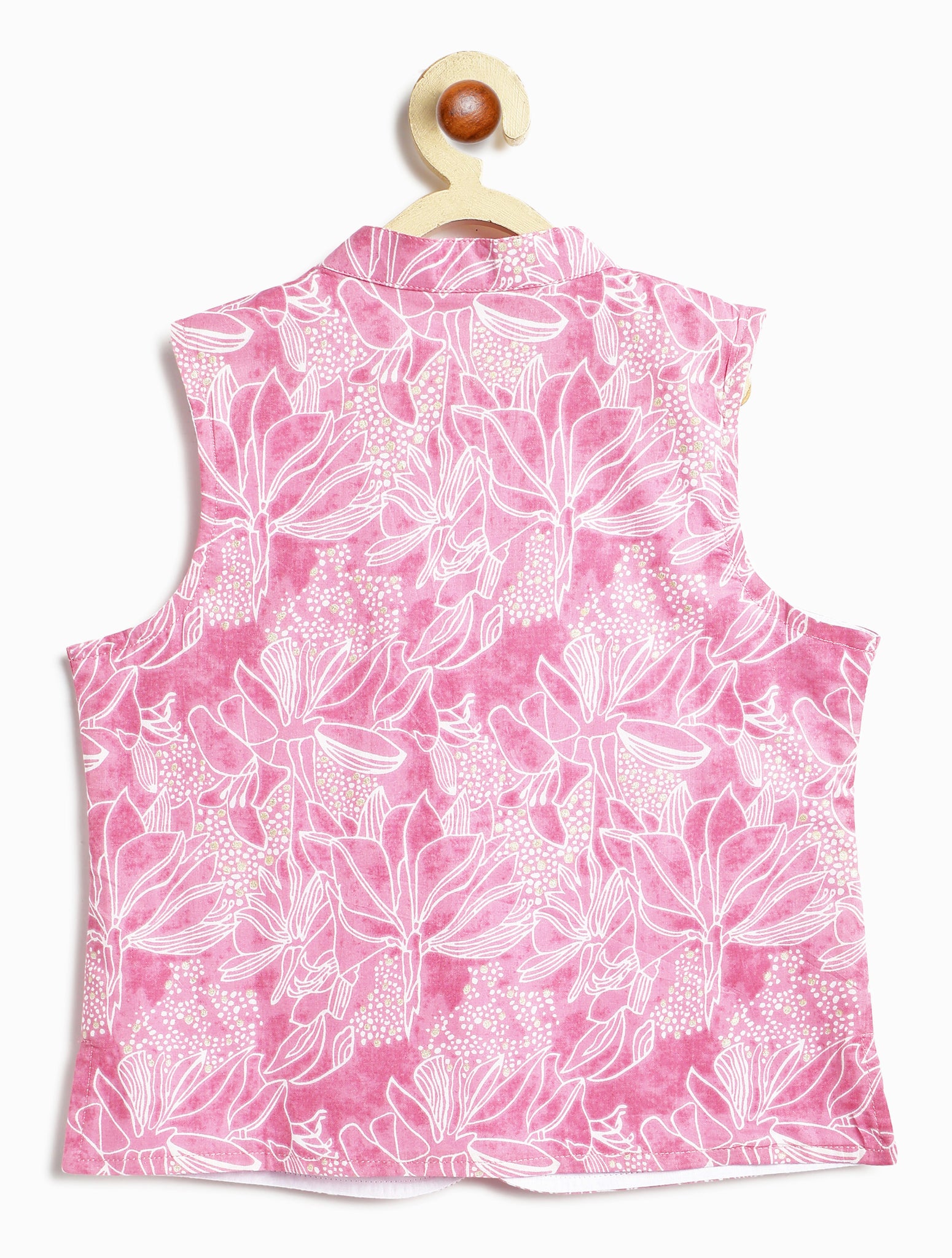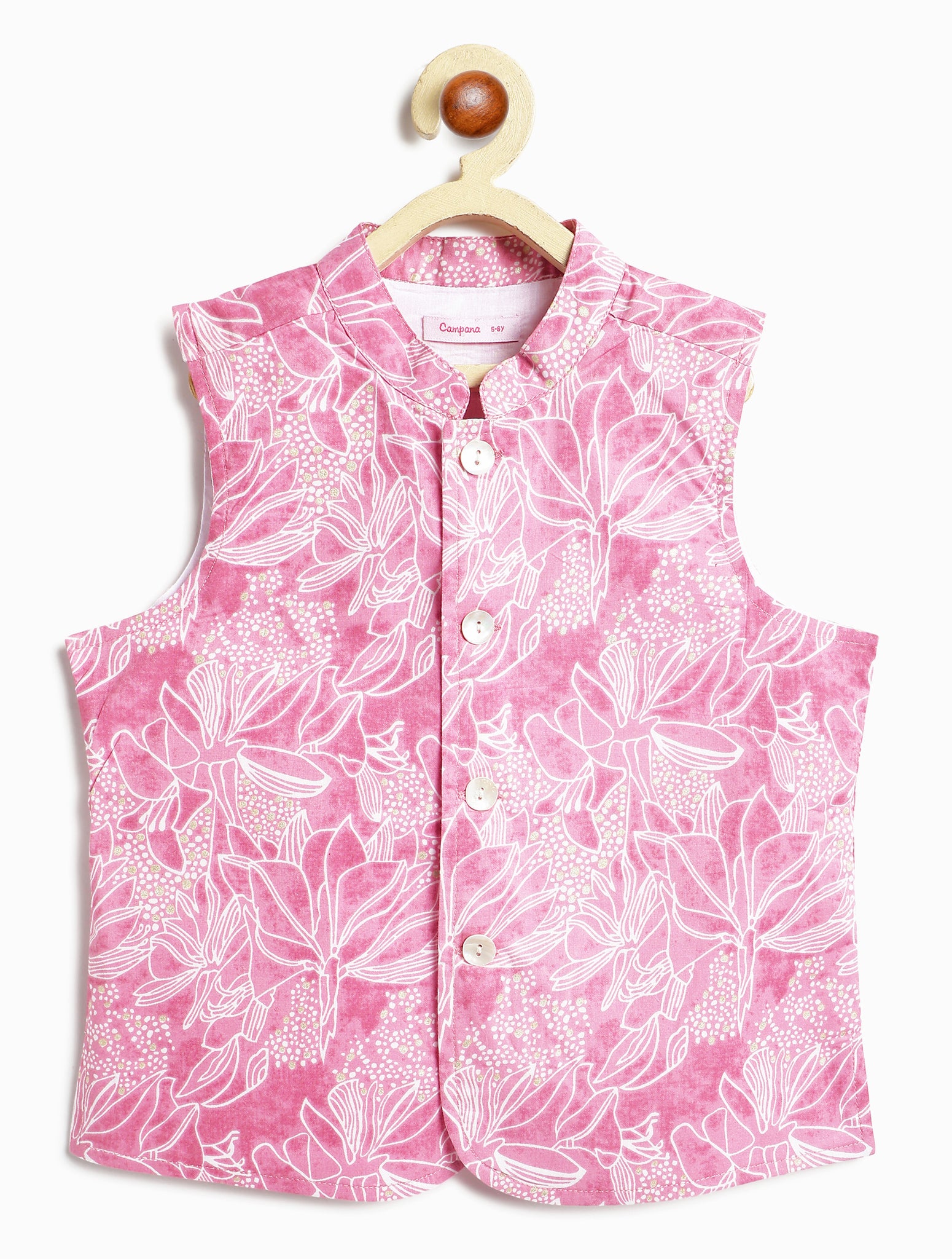 Jacket is sleeveless with cotton lining, mandarin collar neck, and front button closure