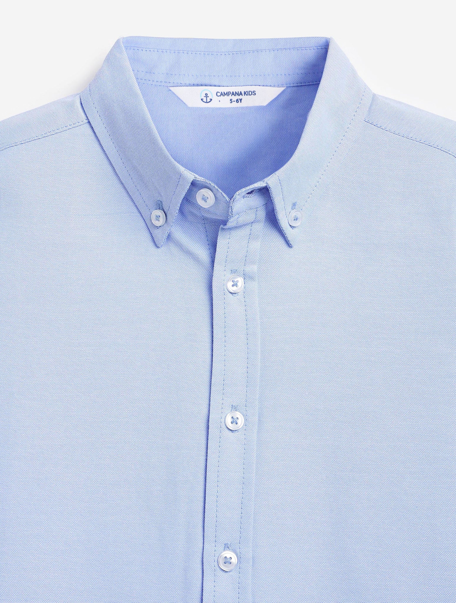 Campana Boys Solid Full Sleeves Pure Cotton Oxford Shirt - Light Blue