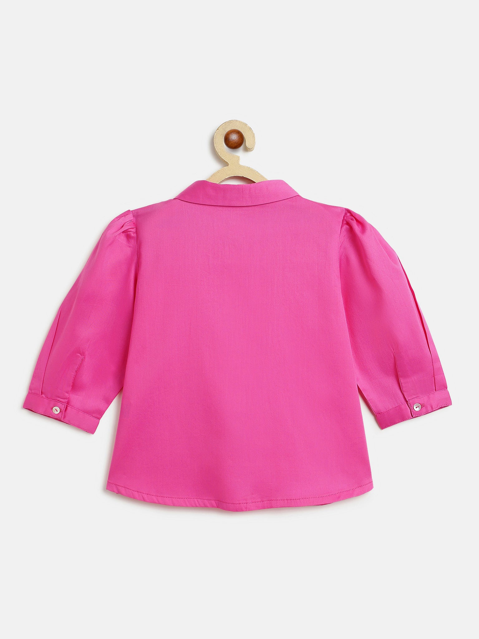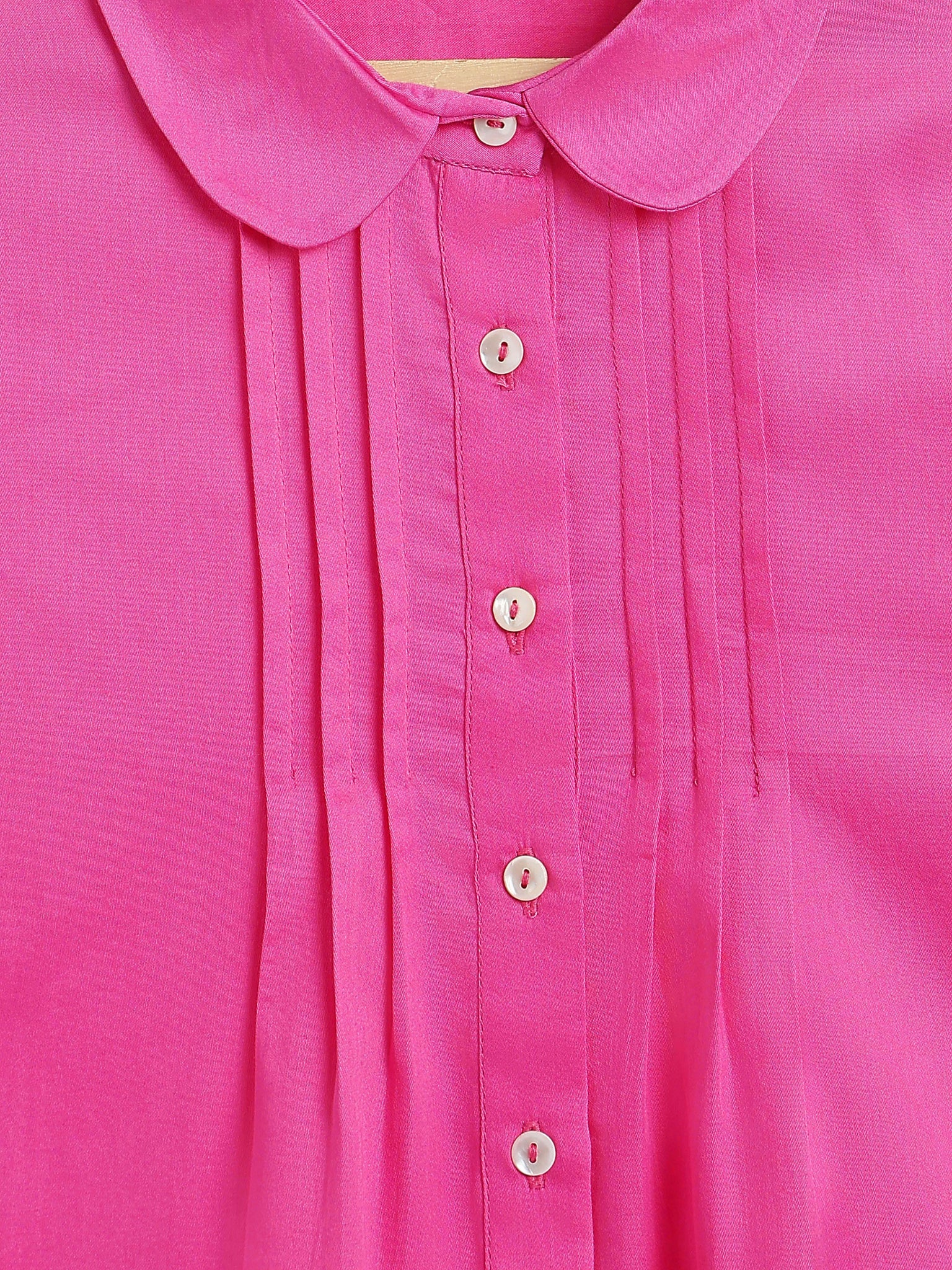 It has a rounded collar, front pleats and shirt style buttons with three-fourth sleeves.