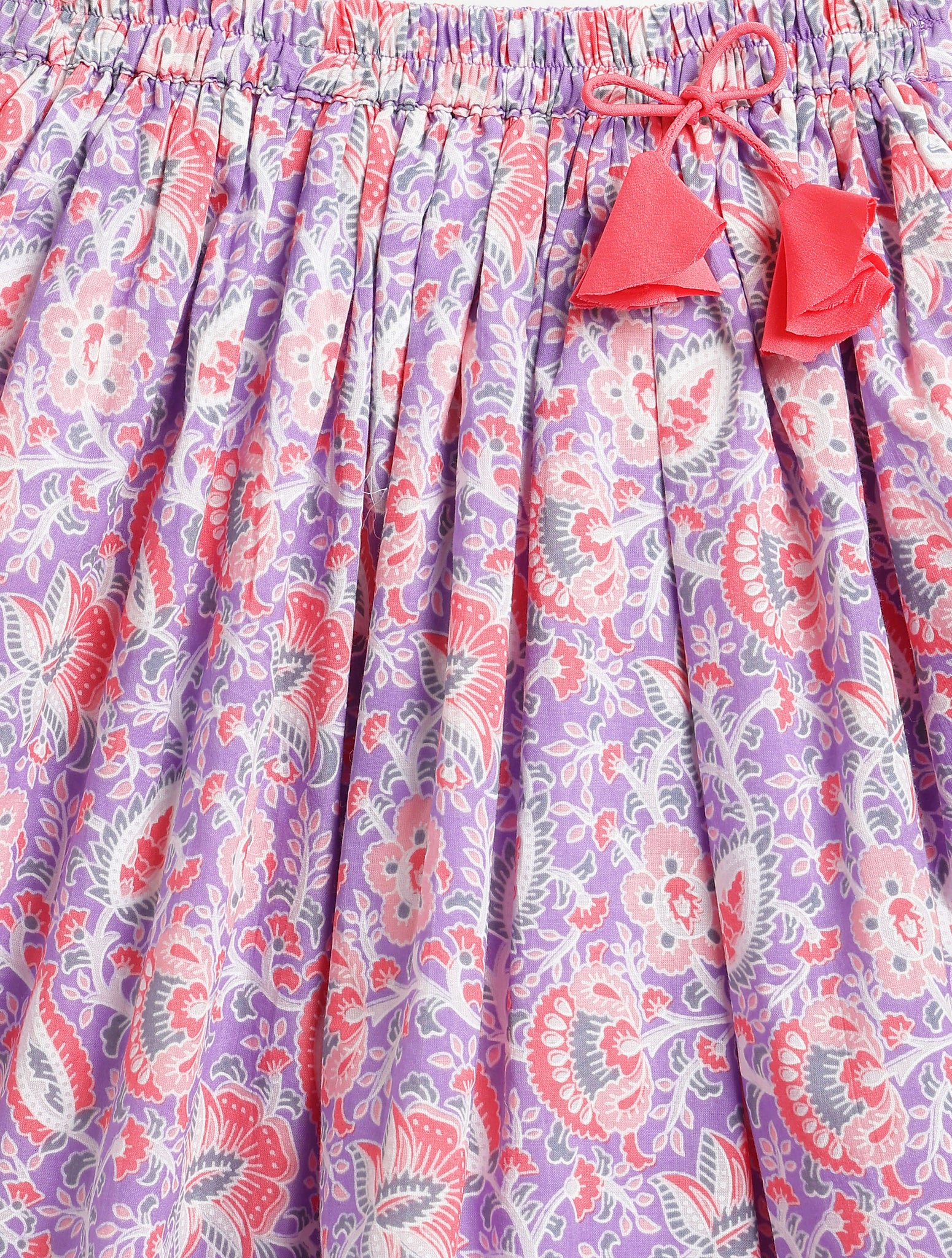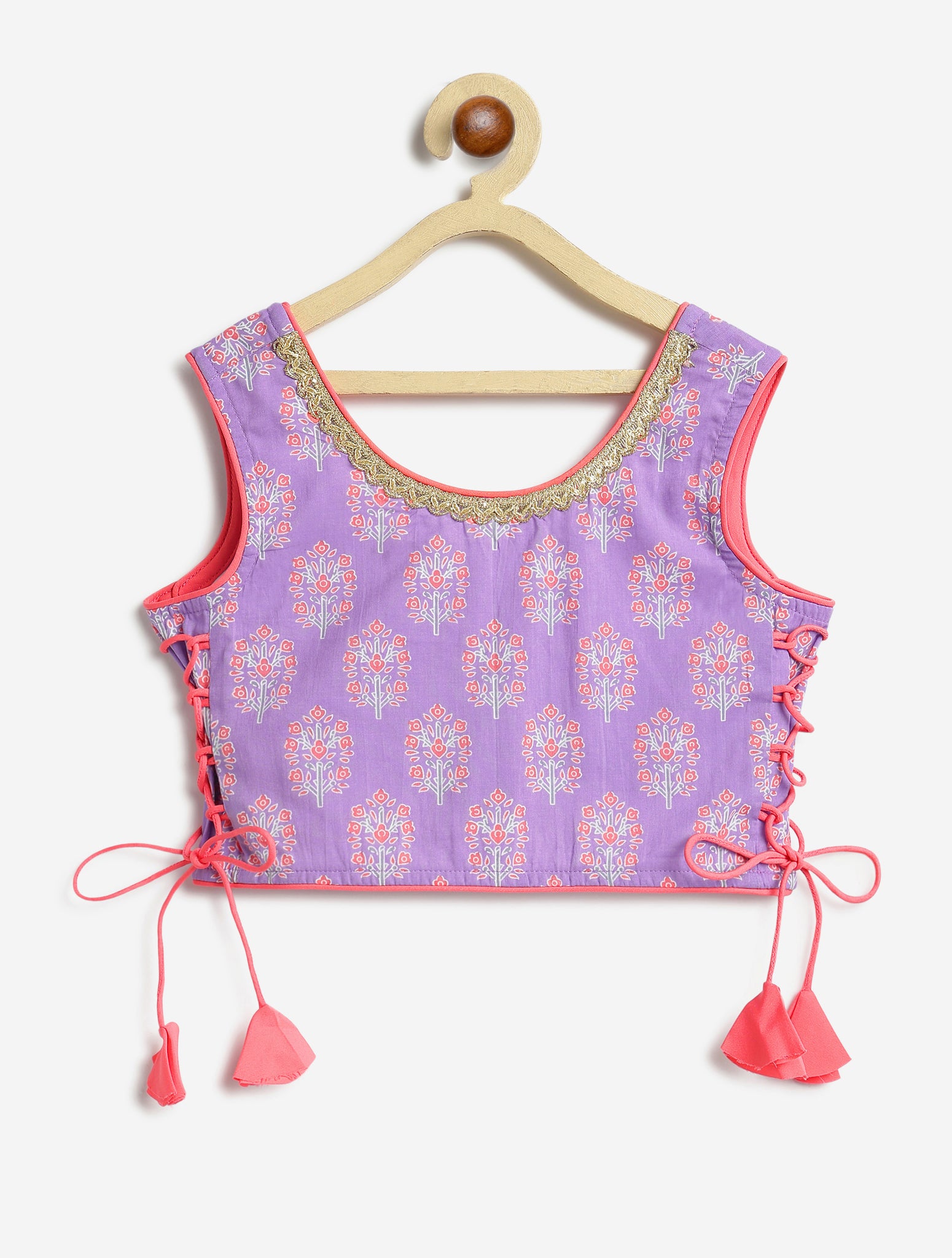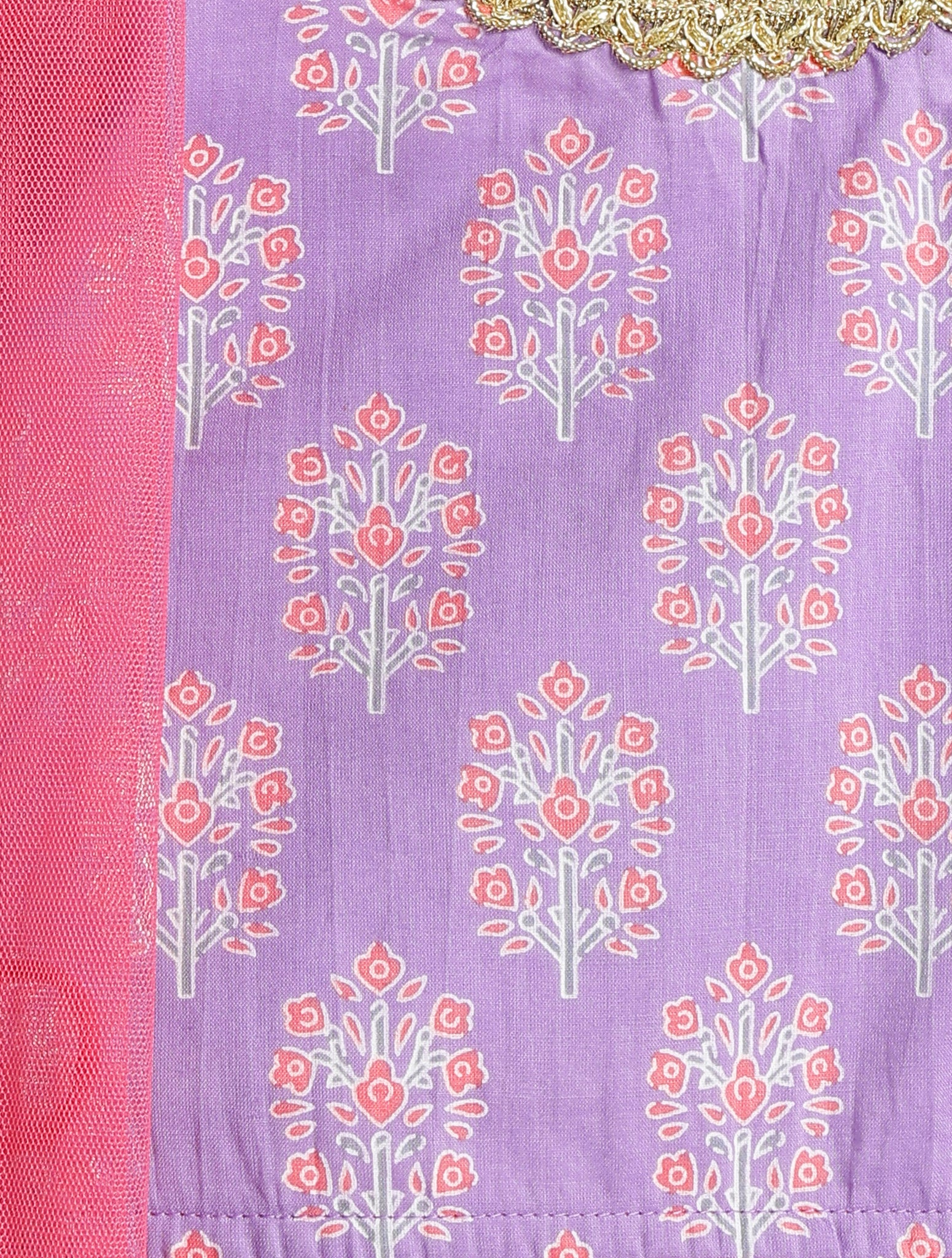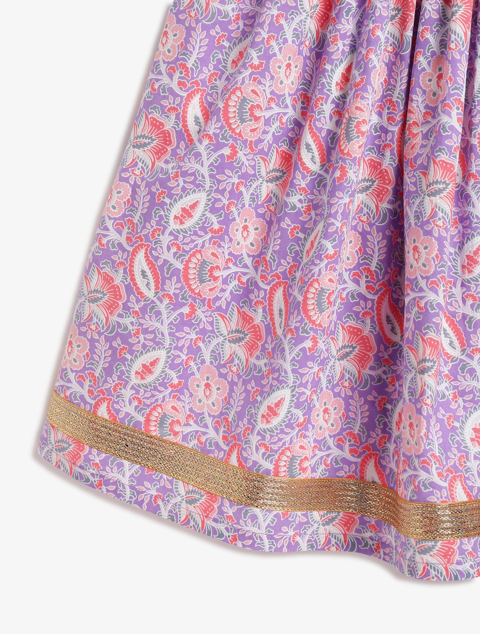 Purple & peach floral printed girls lehenga choli set in pure cotton fabric.