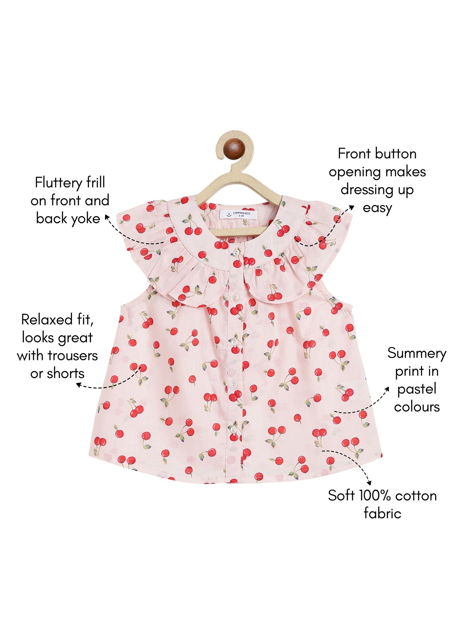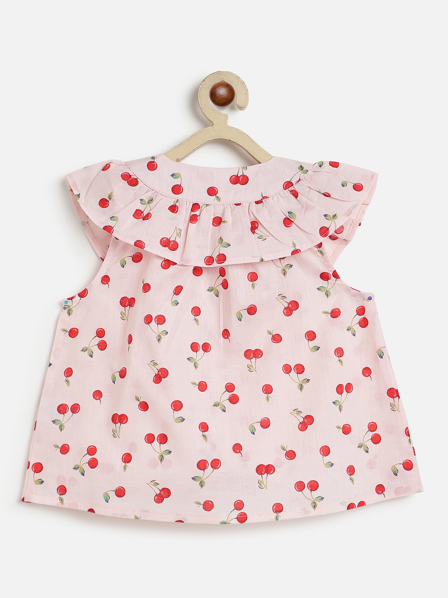 Light pink printed sleeveless top for girls in 100% cotton fabric.