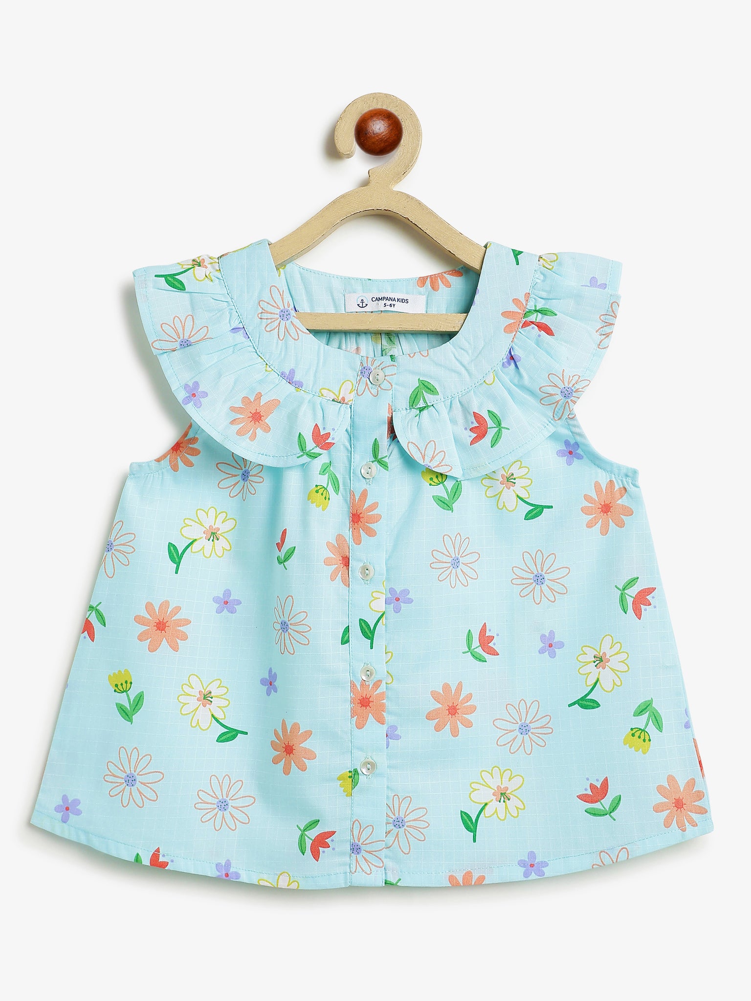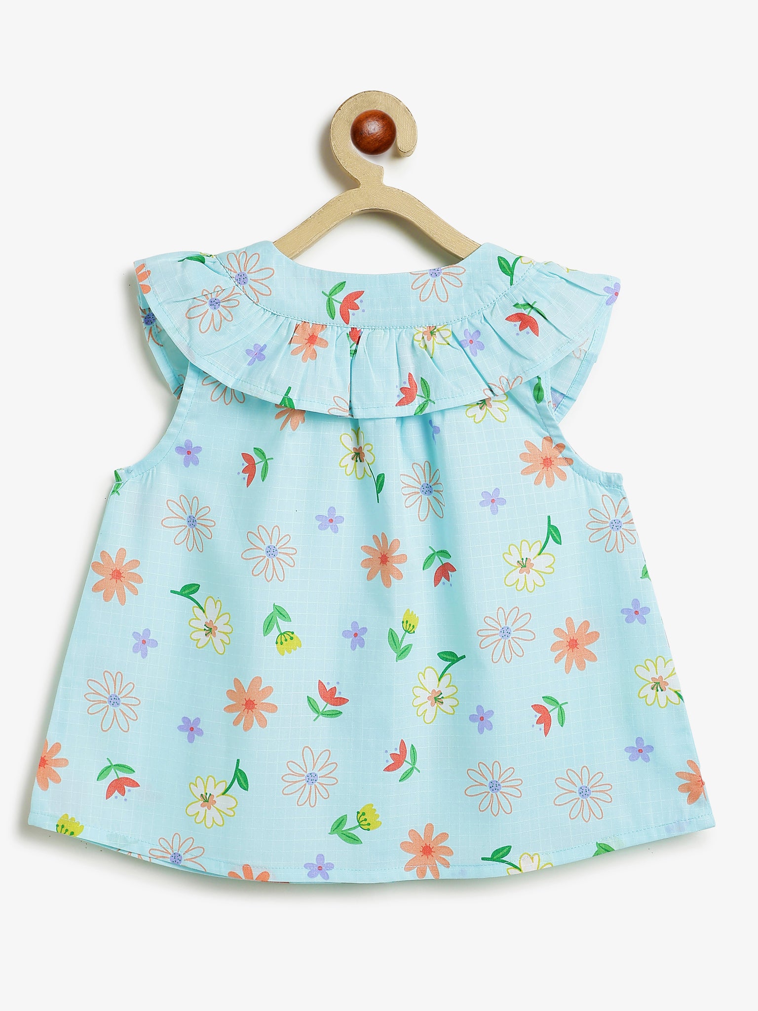 Light blue printed sleeveless top for girls in 100% cotton fabric.