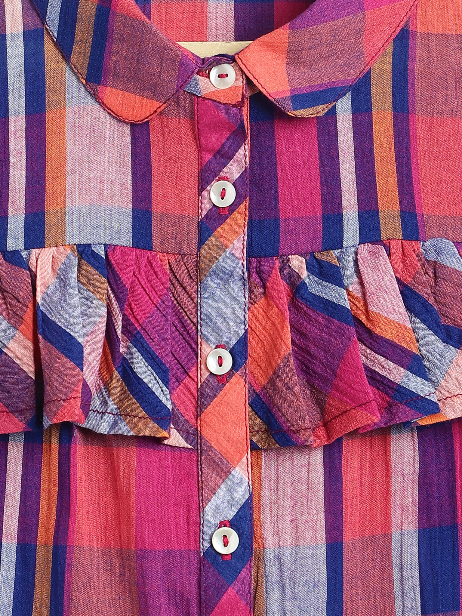 It has a collar and shirt style front buttons with a frilled yoke.