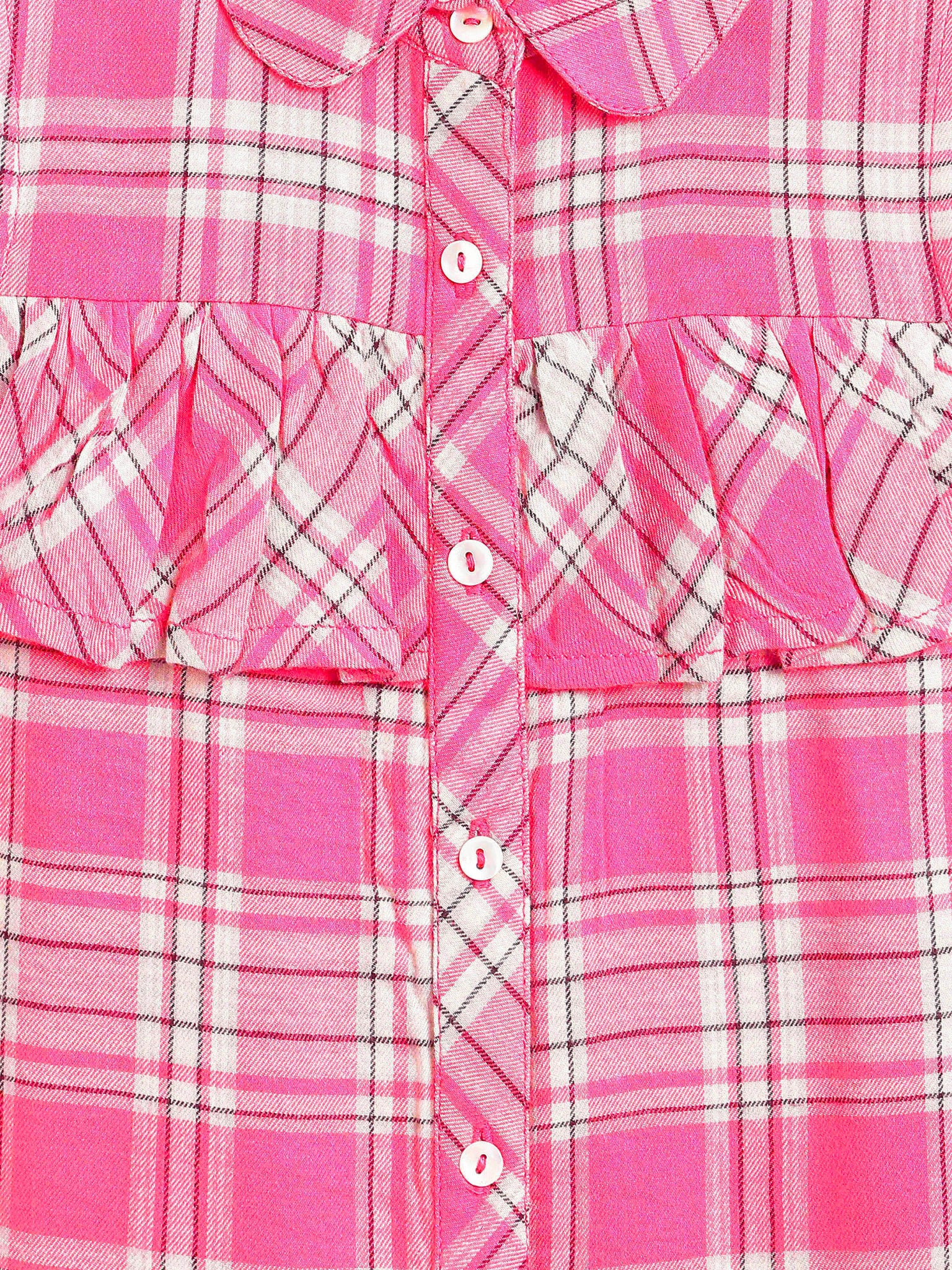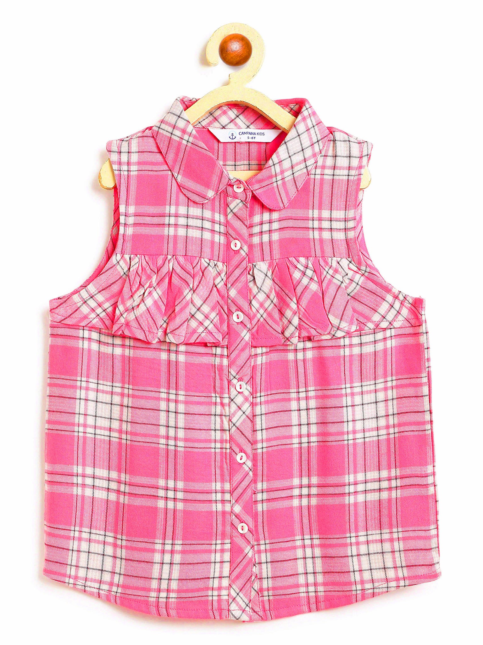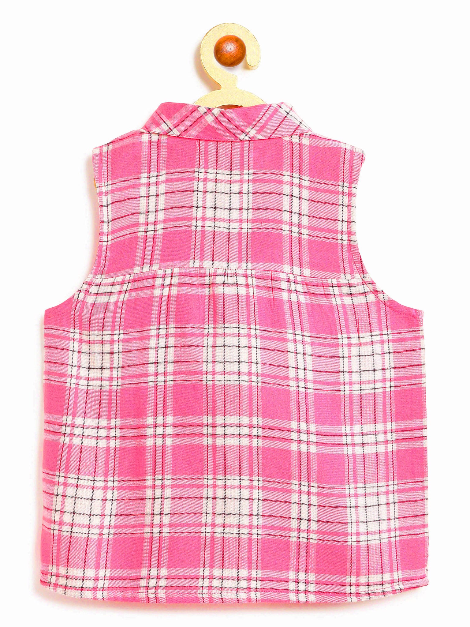 Pink checked sleeveless top for girls in 100% cotton fabric.