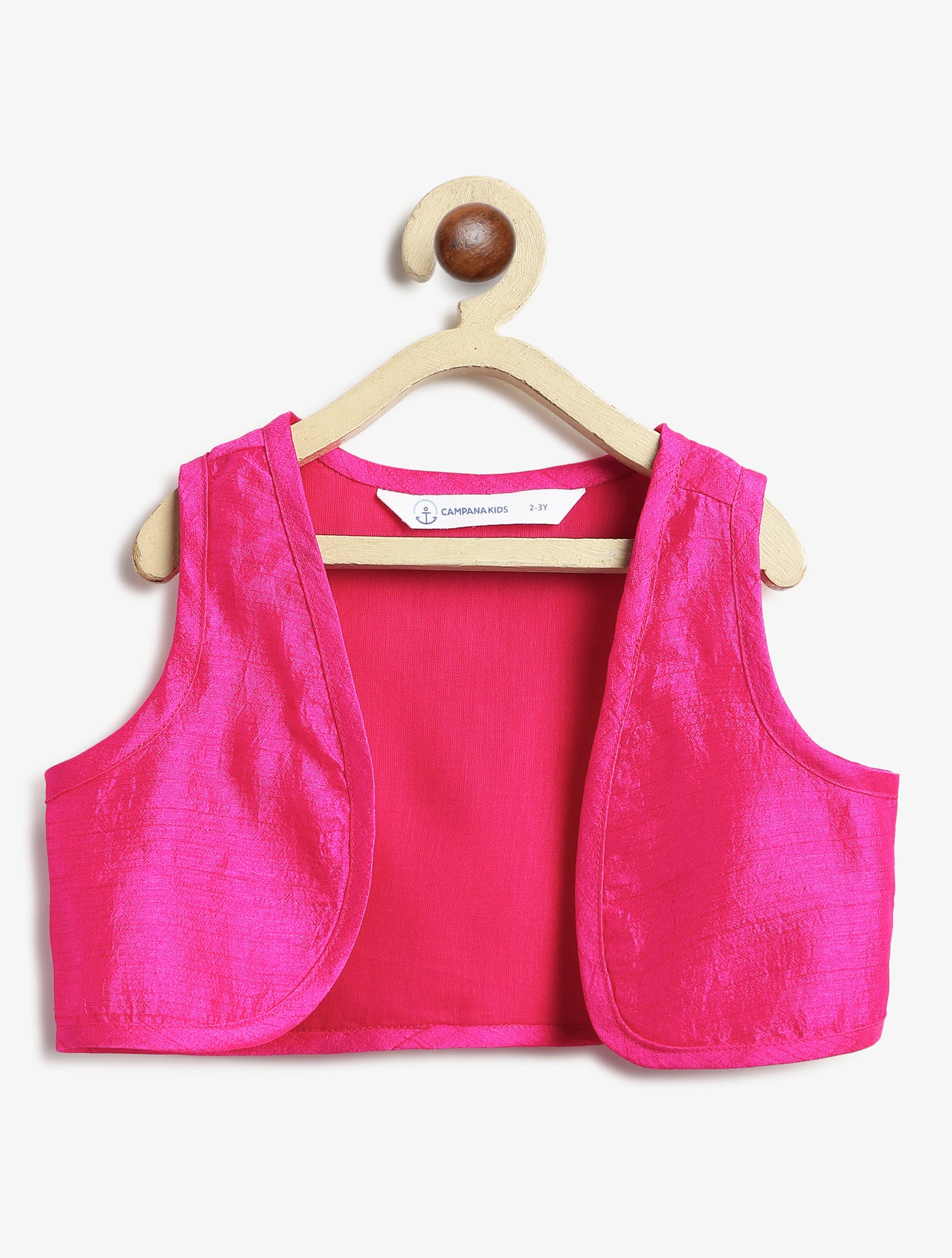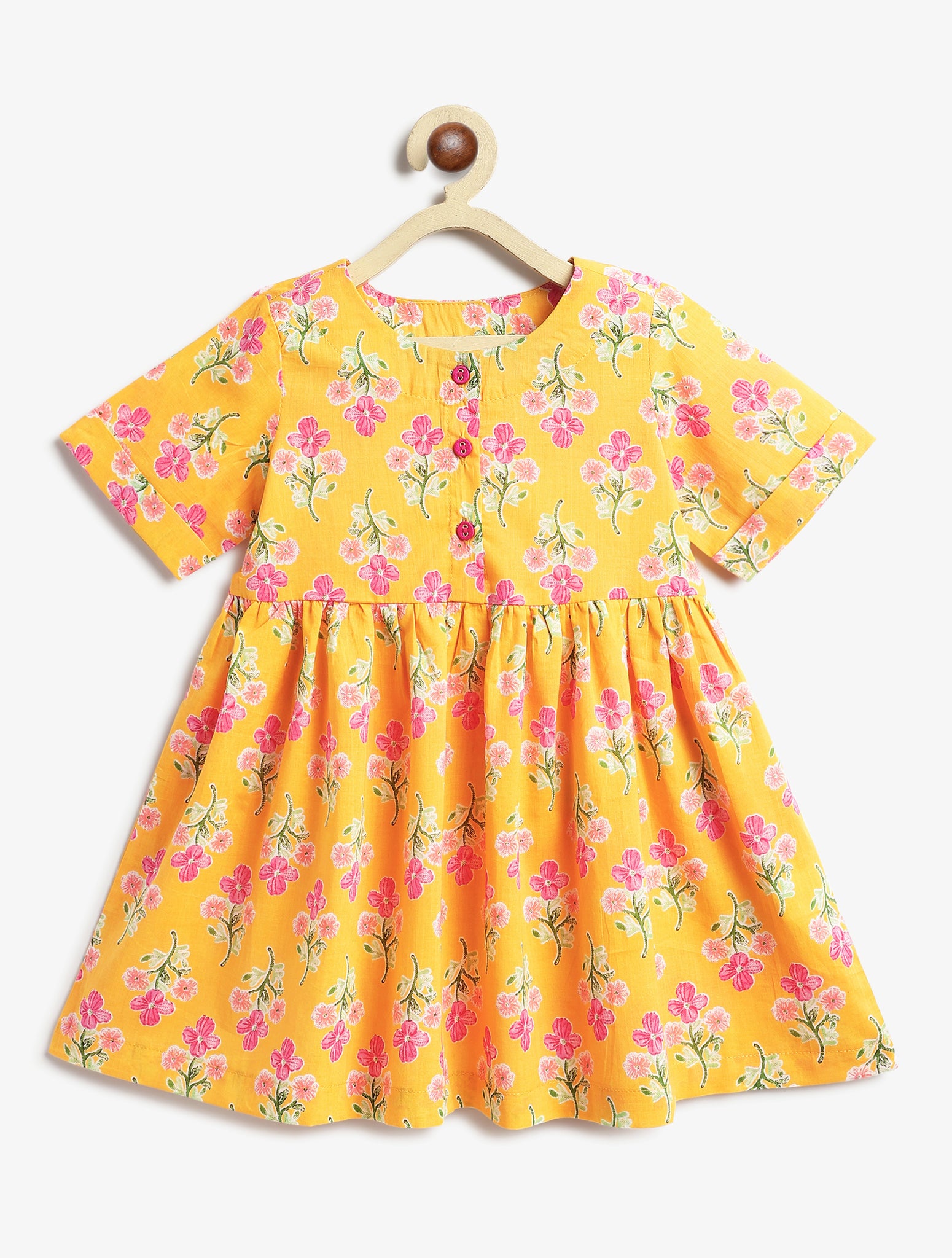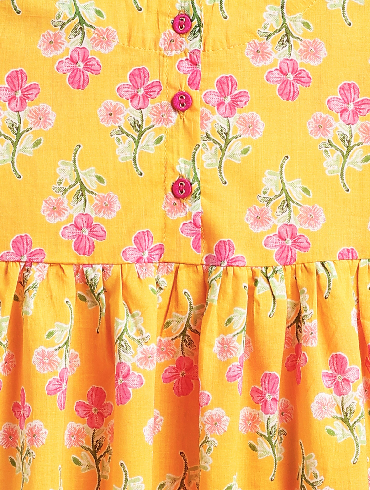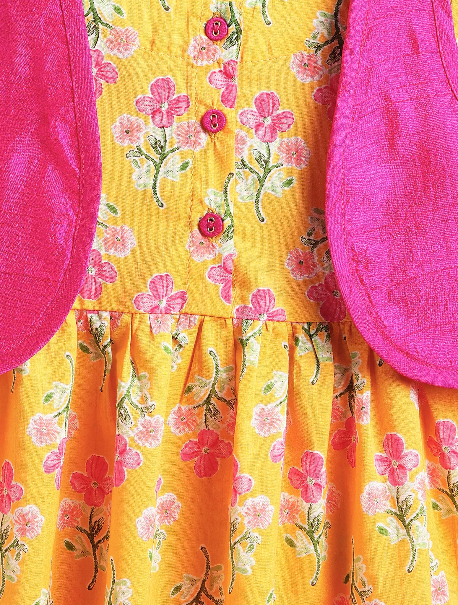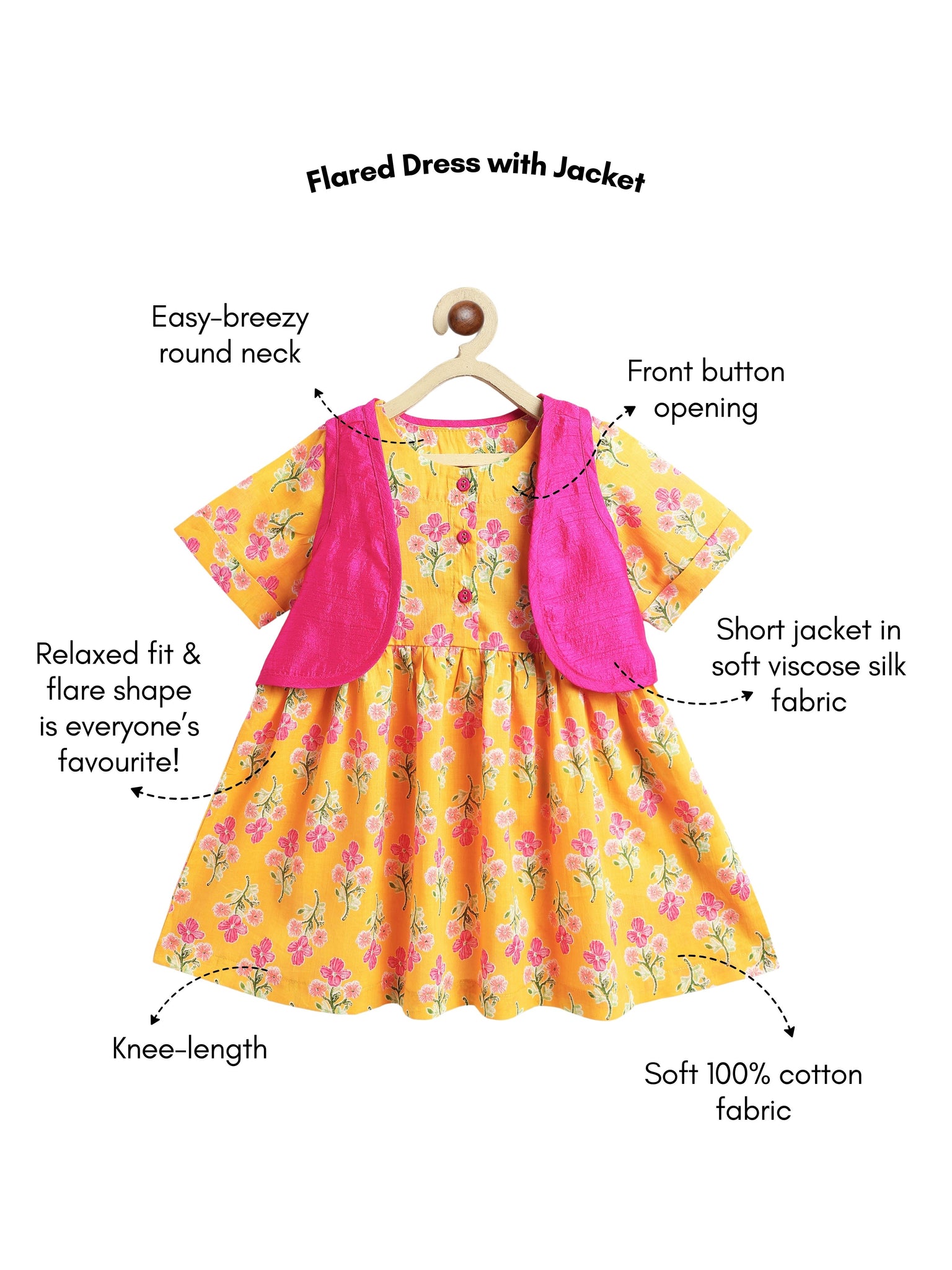 Campana Girls Zoe Cotton Dress with Short Jacket - Floral Print - Yellow & Magenta